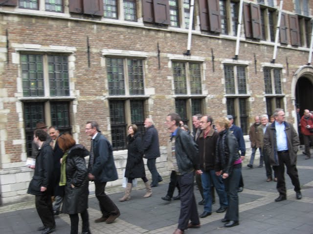This is a good week to be thankful, and I am especially grateful to everyone who made the launch of De meester van de schaduw in Antwerp such a success. Pub day itself began with a formal launch at the Rubenshuis, presided over by director Ben van Beneden and Rubens scholar Leen Huet. Attendees, including some twenty Antwerpers who had won space in a lottery held by the Gazet van Antwerpen (the city’s major daily), then followed me on a tour of Rubens sites (the home of Nickolaas Rockox, the Cathedral), culminating with a champagne reception at City Hall. By tradition, we ended the day with a round of Bollekes at the Engel. A few links and images:
