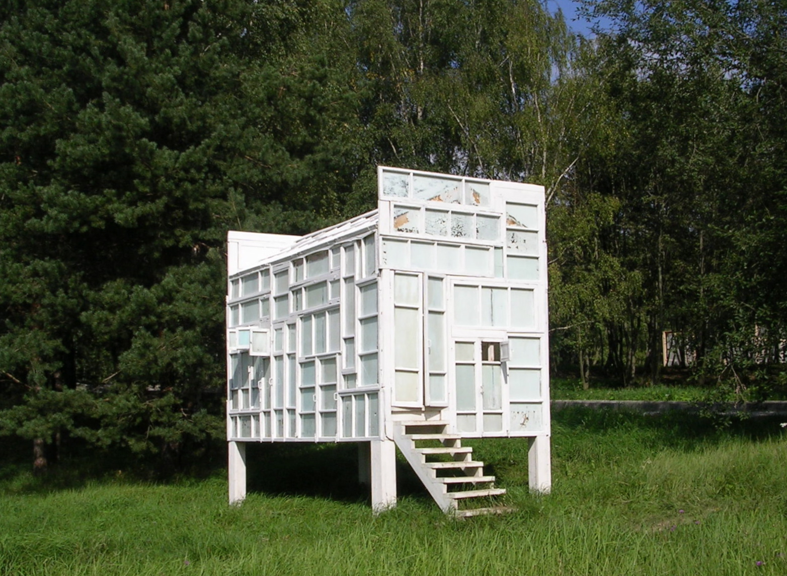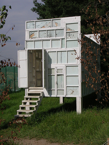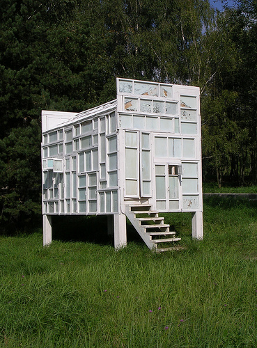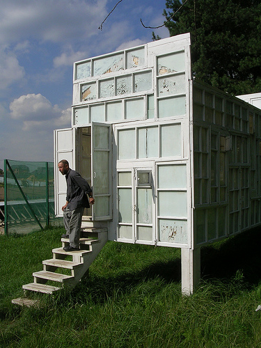 Barack Obama is in Moscow hitting the reset button on Russian-American relations. We applaud the effort, and suggest there would be no better place for him to toast this new direction with misters Medvedev and Putin than Sasha Brodsky’s Vodka Drinking Pavilion, just outside the city. It’s built entirely of repurposed windows from a demolished 19th century factory building. A few more pictures below, with the architect himself. One of the most beautiful spaces in the world.